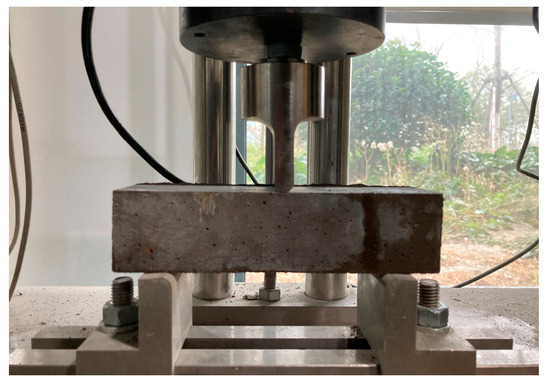 The test device for flexural strength is shown in Figure 7. According to GB/T 17671 (1999), the loading rate for the flexural strength test is 50 N/s ± 10 N/s. The final experimental result is the average of the flexural strengths of the three prism specimens.