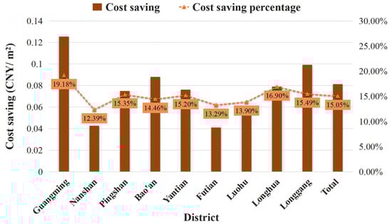Cost saving amount and percentage of nine districts in Shenzhen.