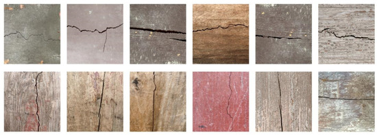 https://github.com/memymine-meng/CrackImages.git, accessed on 24 March 2025), which contains 594 images of cracks in ancient wooden structures. Among these, a dataset of 474 crack images has been publicly released. The data were collected from the Bawang Academy, a building that was originally part of the Bawang Temple established in 1415 and has a history of over 600 years. As a result of prolonged exposure to environmental factors and insufficient professional personnel and high-end equipment, the wooden structure has developed numerous cracks, which are distributed across columns, beams, doors, and windows.
