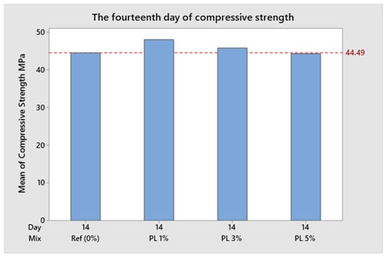 43]. Conversely, replacement percentages above 5% have been associated with significant reductions in load-bearing capacity, as PL particles introduce voids and disrupt the concrete matrix [