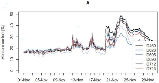 - The moment with the greatest difference in moisture content between the maximum and minimum values within layer A (exterior layer of the CLT panel);