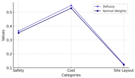In this study, safety, cost, and site layout are compared in detail using FANP and DEMATEL. Section 4.4 presents the methodology of this comparison, focusing on how to interpret and integrate the results of these techniques to provide insight into the interrelationship between these factors. This process evaluates the impact of each factor on safety, cost, and site layout and finally concludes with the optimal strategies for construction site layout.