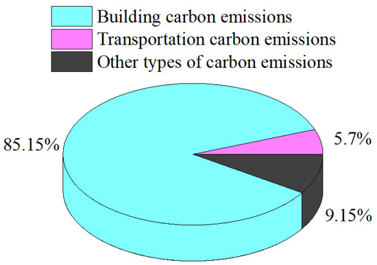 In the equation, represents the building’s carbon emissions, represents the floor area of the type of building, represents the annual electricity consumption of the type of building, represents the carbon emission factor for electricity, represents the annual gas consumption of the first type of building, and represents the carbon emission factor for natural gas.