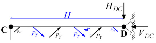 Taking the CD segment (Figure 6) for analysis, the vertical force at point D can be derived based on the moment equilibrium at point C:
