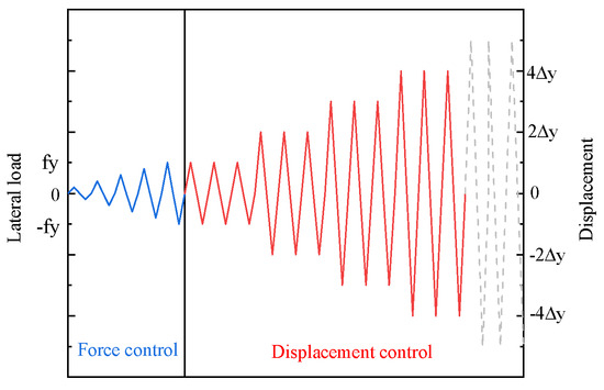 The test setup is shown in Figure 12, and the cyclic loading protocol is illustrated in Figure 13; the lateral cyclic load applied to the finite element model is also consistent with Figure 13.