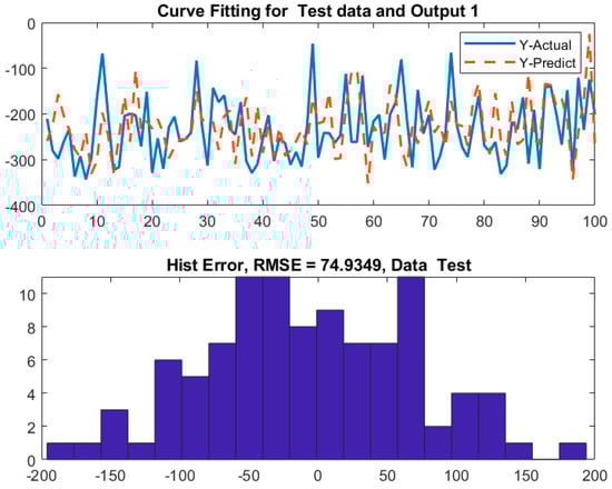 Figure 3 illustrates the deep learning training process over 100 epochs. The graph highlights the performance of the model, with the root mean square error (RMSE) at 32, indicating the level of prediction error. In general, a lower RMSE value indicates a higher prediction accuracy of the model. The X-axis represents the number of training epochs, while the Y-axis represents the error or loss value. Ideally, the error curve should decrease as the number of epochs increases, reflecting the model’s improvement in fitting the training data. Close proximity between the training and validation curves indicates a well-performing model with minimal overfitting or underfitting problems []. At the end of the training period, an RMSE of 32 indicates that the model has converged to its final weights and is ready to predict new data.