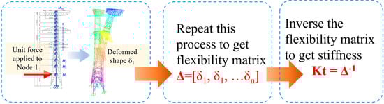 Then, the stiffness matrix was calculated as the inverse of the flexibility matrix (as shown in Figure 4):