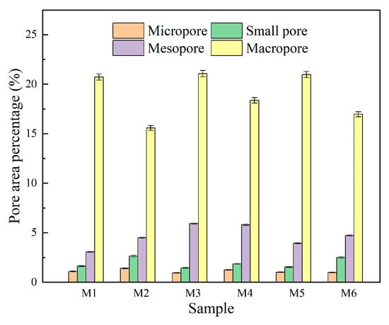 In this section, the SEM images were binarized, and the software’s automatic calculation function was utilized to extract relevant information pertaining to pores and particles. In this study, we concentrated on the quantitative analysis of particle abundance and pore area distribution.
