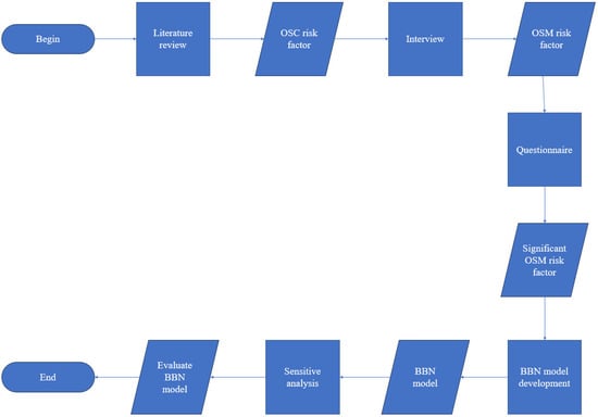 This research methodology involves three key steps. First, semi-structured interviews were conducted with key Chinese OSC practitioners to identify risk factors in the OSM process. Second, a questionnaire was developed based on the identified risk factors, allowing for the determination of significant risks through quantitative analysis. Third, a BBN model was built using the collected data to evaluate how these significant risks influence QCD in OSC projects.