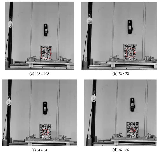 To evaluate the impact of template size on the accuracy of this method, this paper varies the size of the preset template without altering its central position. Specifically, templates with resolutions of 36 × 36, 54 × 54, 72 × 72, and 108 × 108 are used for tracking, as illustrated in Figure 11. Additionally, the selection of the region of interest (ROI) remains unchanged.