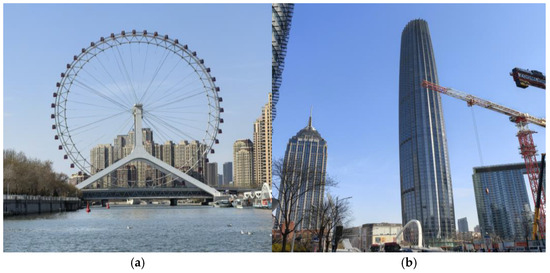 Contemporary architectural representatives: (a) Tianjin Eye; (b) Jin Tower.