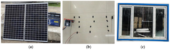 The solar phase change thermal storage window system utilized several instruments. These included a 200 W solar cell, a mobile power supply with a 220 V inverter, and a heating wire equipped with a 30-degree Celsius temperature control switch. The schematic diagram of these instruments is presented in Figure 8.