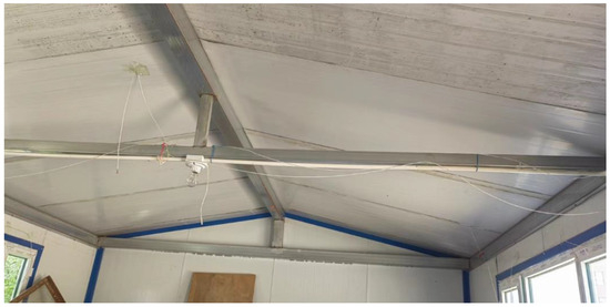 The experimental location is the boarding warehouse of the playground on the East Campus of Northeast Power University in Jilin City. This warehouse contains a total of four storage areas. To reduce the impact of other factors such as light intensity, the second and third areas were, respectively, selected as the experimental room and the control room. Energy-saving windows were installed in the experimental room (labeled with a red box), as shown in Figure 5. In contrast, normal windows were used in the comparison room (labeled with a yellow box).