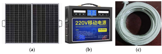 Schematic diagram of the instrument: (a) Photovoltaic panels; (b) Mobile power; (c) Heating wire.