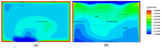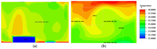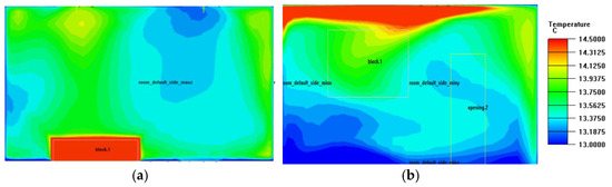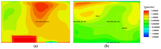 In the study of passive phase change thermal storage windows, the inter-experimental temperature data when no phase change occurred were selected and are shown in Table 11. The corresponding temperature field results are shown in Figure 18.