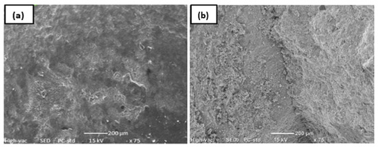 To examine the microstructure of the aggregates, a scanning electron microscopy (SEM) analysis was performed. The SEM image (Figure 3) shows that the RCA has a rougher and more irregular surface than the NCA, with remnants of attached cement paste. These characteristics explain the differences in physical properties.