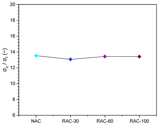 Ratio of compressive strength to splitting tensile strength for the tested concretes.