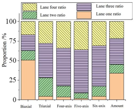 The position of vehicles on the bridge is shown in Figure 3. As we can see from the figure, two-axle small vehicles generally drive in the first lane, and the vast majority of trucks with more than four axles drive in Lanes three and four, among which Lane three has more dense traffic.