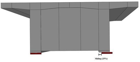 The technical standard of Tianjin: 25% of the corresponding side length and the corresponding side length, the bearing position is serious; when the bearing length is >25% of the corresponding side length, the bearing position is particularly serious; considering the influence of extreme disease on the T-beam, the bearing increases by 50%. The specific sliding simulation method is shown in Figure 5.