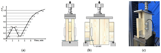As shown in Figure 3a, the loading procedure was conducted in accordance with the force control protocol outlined in EN 26891 [33]. The estimated maximum load Fest was defined as the average of the maximum loads Fmax,i of various specimens of the same type. For each group of specimens, the estimated maximum load Fest was determined through testing, utilizing a constant loading rate of 0.5 mm/min. Verification was carried out to ensure the following conditions were met: