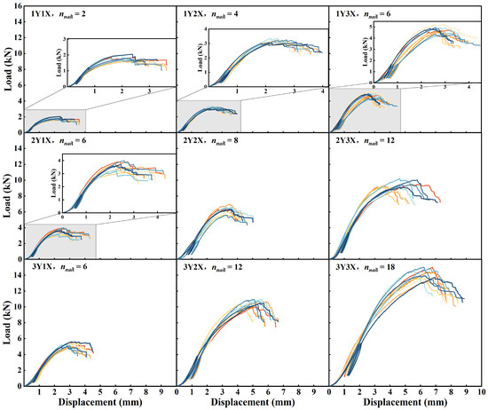 3.1. Load–Displacement Characteristics of Multi-Nail Joints