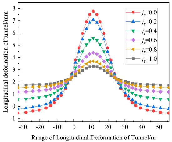 Calculation and comparison of longitudinal heave deformation of the shield tunnel with different jz.