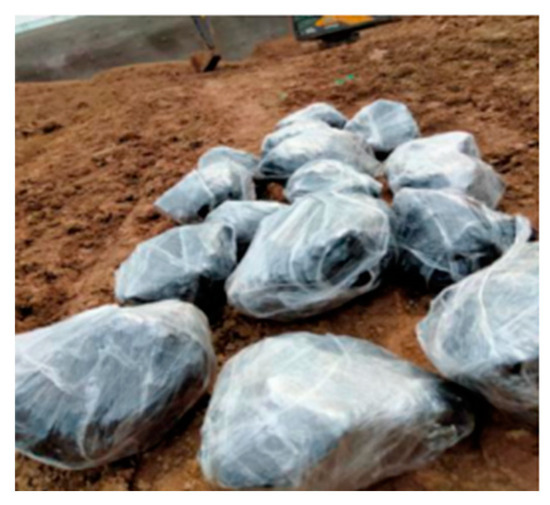 The test loess was taken from Chang’an District, and the soil extraction site is shown in Figure 1. The depth of soil extraction was between 2.0 m and 3.0 m. Suitable square soil samples were cut out on the side walls of the pit, wrapped in multiple layers of black plastic bags, and sealed tightly by wrapping the soil blocks in all directions with transparent adhesive tapes to ensure that the moisture was not lost as much as possible. The above and below surfaces of the soil blocks were marked. The basic physical properties of loess are shown in Table 1