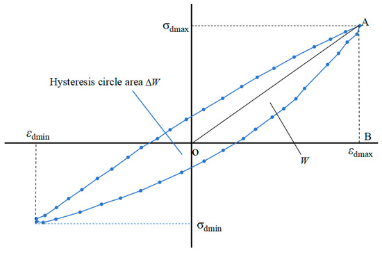 Formula λ is the damping fraction; ΔW is the area of the closed interval enclosed by the hysteresis curve; the soil acts on cyclic loads dissipated energy; W is the area of the triangular ABO, the total energy of the dynamic load action in the cycle.