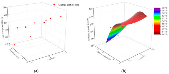 Three-dimensional surface model of artificially structured loess under different conditions: (a) 3D scatterplot of mean particle size; (b) 3D model of average particle size.