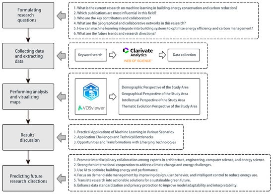 A well-defined set of research questions is essential for structuring a bibliometric review that is both comprehensive and focused. This study, therefore, centers on the following critical questions, aiming to provide a systematic overview of machine learning applications in building energy conservation and carbon reduction: