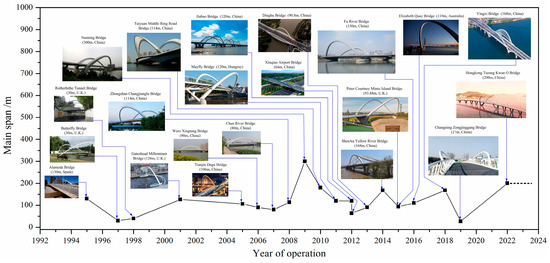 Figure 1. Major development history of butterfly arch bridges worldwide.