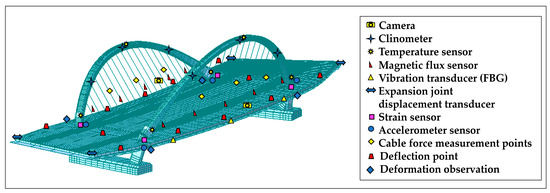Figure 7. Sensor arrangement of the SHM system of the Fu River Bridge.