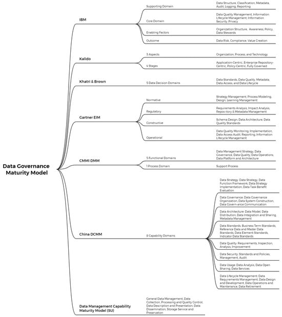 - Mahanti, R. Data Governance Maturity Models. In Data Governance Success; Springer: Singapore, 2021; pp. 99–126. ISBN 9789811650857. [Google Scholar]