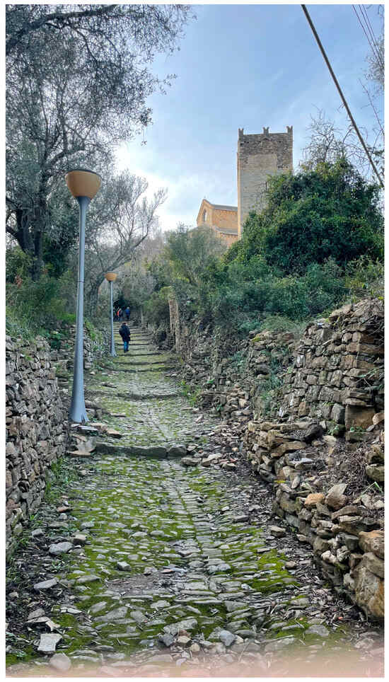 In early 2022, the Municipality of Andora (SV) submitted a proposal called ‘Borgo Castello—remember the past to build the future’, as a pilot project. This initiative was part of the National Recovery and Resilience Plan—specifically under Mission 1—digitalization, innovation, competitiveness, and culture. It falls within component 3 related to culture 4.0 and measure 2 ‘regeneration of small cultural sites, cultural, religious and rural heritage’. The investment, termed investment 2.1, is designed to enhance the ‘attractiveness of villages’. This project was selected by the Liguria region and deemed eligible for funding by the Ministry of Culture, securing a grant of 20 million euros from the European Union’s Next Generation EU program (Figure 1 and Figure 2).