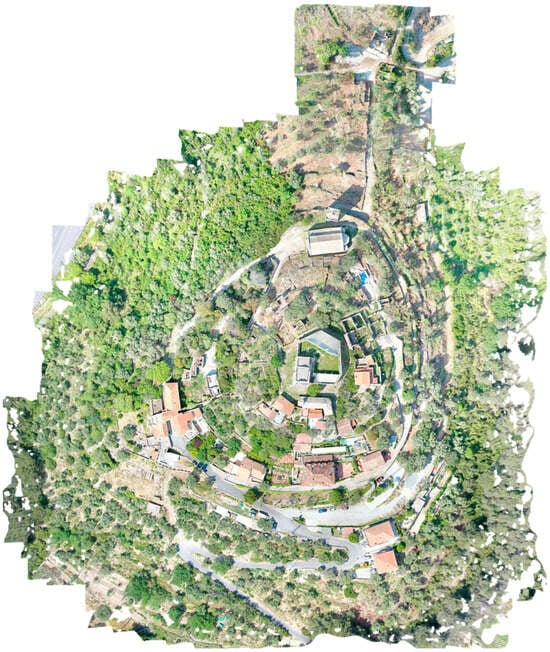 The ruins of the Borgo have been thoroughly studied and understood through both general and detailed surveys, including topographic assessments, laser scanning and 3D models of the ruins, digital photogrammetry, and longimetry (Figure 8 and Figure 9).