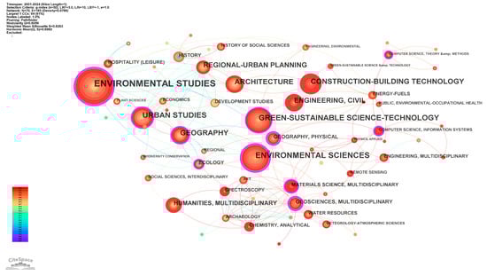 Based on the co-occurrence network of research subjects and relevant data, environmental studies, environmental science, and green and sustainable science and technology hold significant sway in the realm of historic district research. This trend underscores the fact that in the contemporary era, the exploration of historic districts extends far beyond the confines of mere architecture and culture. Instead, there is a growing and intense focus on the surrounding environment. Urban studies, too, have a pivotal role to play in the research of historic districts. This clearly demonstrates that the connection between historic districts and the overall development of cities has captured extensive attention. The involvement of the geography discipline in historic district research signals a heightened emphasis on the spatial distribution, geographical environmental features, and regional disparities of these districts.