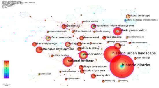 Commonly used research methods in this field include the application of models and spatial analysis tools. Keywords such as “urban morphology”, “geographical information systems”, and “space syntax” highlight the reliance on analytical frameworks. These methods are crucial for studying the spatial and environmental characteristics of historic districts and help to deeply understand the complex interactions among urban form, heritage conservation, and contemporary urban needs. In addition, with the passage of time, continuous learning has also become an important development direction.