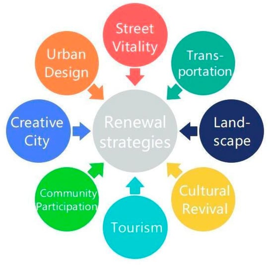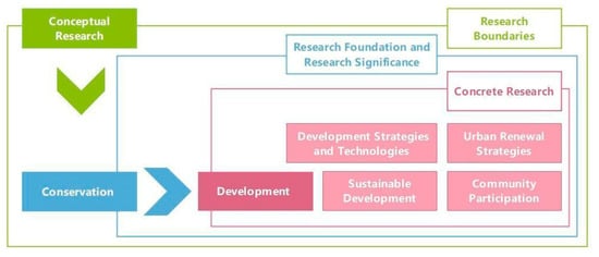 Based on the previous analysis, since the beginning of the 21st century, significant progress has been made in the research of historic districts in many aspects. It also faces complex problems in terms of concepts, conservation and development, sustainable development, urban renewal strategies, and community participation (Figure 12).