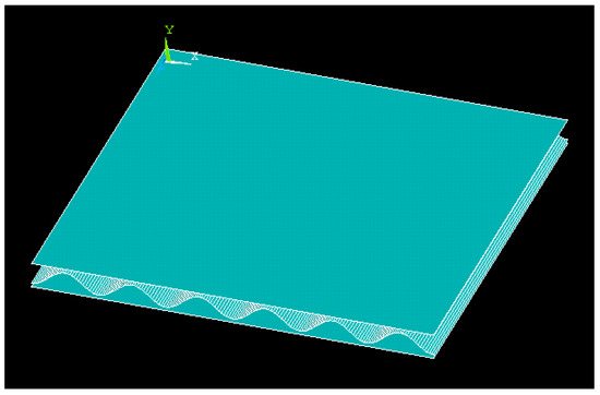 The finite element model of the sinusoidally corrugated sandwich plate.