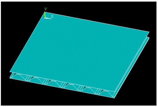 The finite element model of the trapezoidally sandwich corrugated plate.