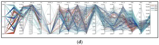 - Decision-making analysis: Solutions selected through the dual entropy-weighted TOPSIS method demonstrate 30–60 years of climate resilience. Optimized solutions achieve 51.5–84.8% HEC reduction and 15–52.9% TDH reduction while ensuring economic feasibility, providing differentiated strategies for Xinjiang’s sub-regions.