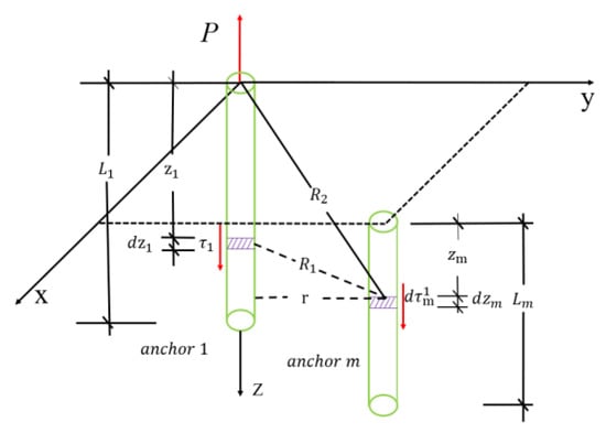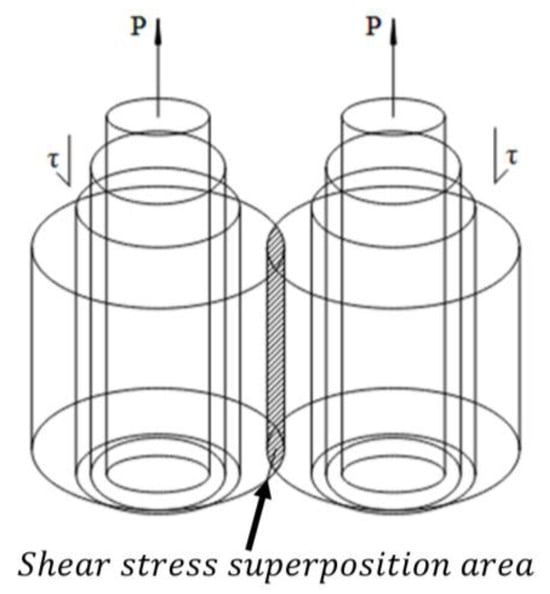 This allows us to determine the additional shear stress exerted by anchor rod 1 on another anchor rod m, where can be obtained using Formula (7):