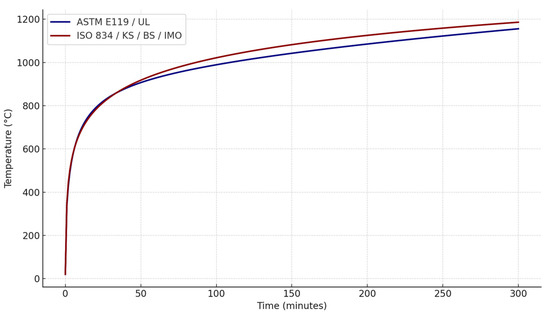Standard temperature–heating curves by specification (applying the ASTM curve) [29,41].