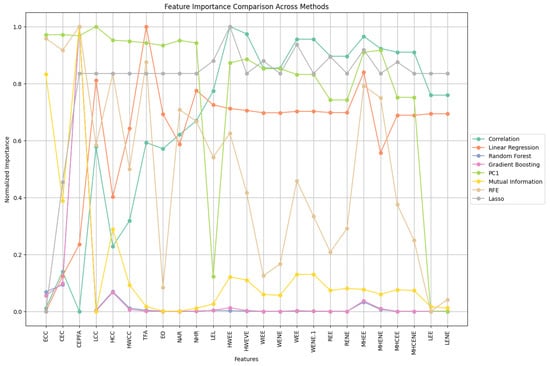 We employed a thorough feature selection approach to identify the most valuable features and enhance the performance of machine learning models, as can be seen in Figure 2. We utilised a blend of filter, wrapper, and embedding techniques to evaluate the significance of features across several assessments. Correlation analysis and mutual information were employed to investigate both linear and non-linear correlations between independent characteristics and the target feature. In addition, we utilised tree-based models such as Random Forest and Gradient Boosting, which are recognised for their intrinsic feature significance metrics, to prioritise features according to their impact on prediction accuracy. Moreover, we utilised principal component analysis (PCA) to discover the primary components that encapsulate the main variations in the dataset. Ultimately, we enhanced our selection procedure by employing Recursive Feature Elimination (RFE) and LASSO Regression. These methods systematically delete less significant features by considering their coefficients. By employing a multifaceted strategy, we were able to carefully choose a comprehensive collection of features to optimise the performance of the model while simultaneously reducing the risk of overfitting and computational complexity.