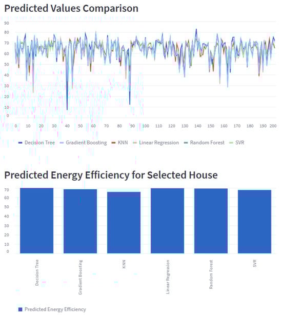 In this regard, we employ a mix of traditional and modern machine learning algorithms that are crucial for enhancing energy efficiency due to their capability of analysing large feature sets of data and identifying complex patterns. This diversity of algorithm selection helps to capture multiple aspects of the features’ relationships, leading towards a more robust prediction. Through the analysis of past data on energy performance, algorithms are employed to predict future energy efficiency in order to pinpoint locations where energy savings are required to be achieved in residential buildings. In our study, the use of mix of traditional and modern machine learning algorithms, such as Linear Regression, Support Vector Regression (SVR), Decision Tree, Random Forest, and Gradient Boosting, is encouraged due to their exhibited efficacy in dealing with a wide range of predictors, as well as their different levels of interpretability and complexity. Linear Regression offers a fundamental starting point because of its simplicity and straightforward interpretation. On the other hand, non-linear models like Support Vector Regression (SVR) and Decision Tree are capable of capturing intricate inter-relationships within the data. Ensemble approaches, such as Random Forest and Gradient Boosting, boost predictive performance by amalgamating many models to mitigate overfitting and enhance accuracy.