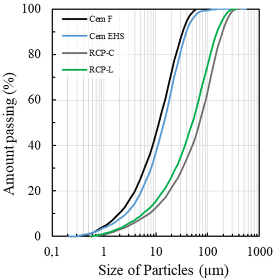 - The low water absorption measured for the RCPs did not seem to influence the rheological behavior of the pastes. The specific surface area, on the other hand, supports the fact that RCP-L mixtures faced more active hydration in the first hours.