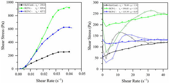 - The effects caused by rheological behavior in cement pastes were dependent on the origin of the recycled powder, with RCP-L of controlled origin presenting gains in yield stress and plastic viscosity, whereas RCP-C also increased yield stress but at a lower proportion than RCP-L, and the lowest viscosity on cementitious pastes.