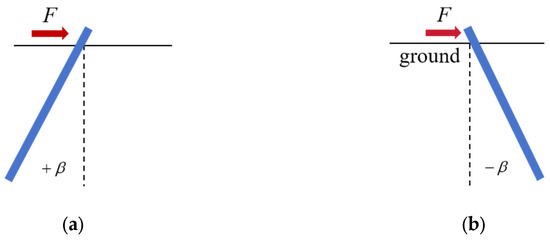 The orientation of pile inclination significantly influences the horizontal bearing capacity of batter piles, underscoring the need to clearly define the relationship between horizontal loading and pile inclination. In this study, piles inclined toward the horizontal load are classified as positive batter piles, whereas those inclined in the opposite direction are classified as negative batter piles (see Figure 1). Under horizontal loading, positive batter piles compress the soil ahead, thereby densifying it and enhancing its strength [8]. In contrast, negative batter piles induce soil uplift, which loosens the soil and diminishes its strength. Consequently, positive batter piles exhibit higher initial stiffness owing to increased lateral resistance in the surrounding soil. In contrast, negative batter piles experience localized soil uplift, which leads to a reduction in bearing capacity. Furthermore, numerical simulations reveal that positive batter piles exhibit a distinct moment distribution pattern, closely linked to structural modifications in their load-bearing mechanism under dynamic loading conditions.
