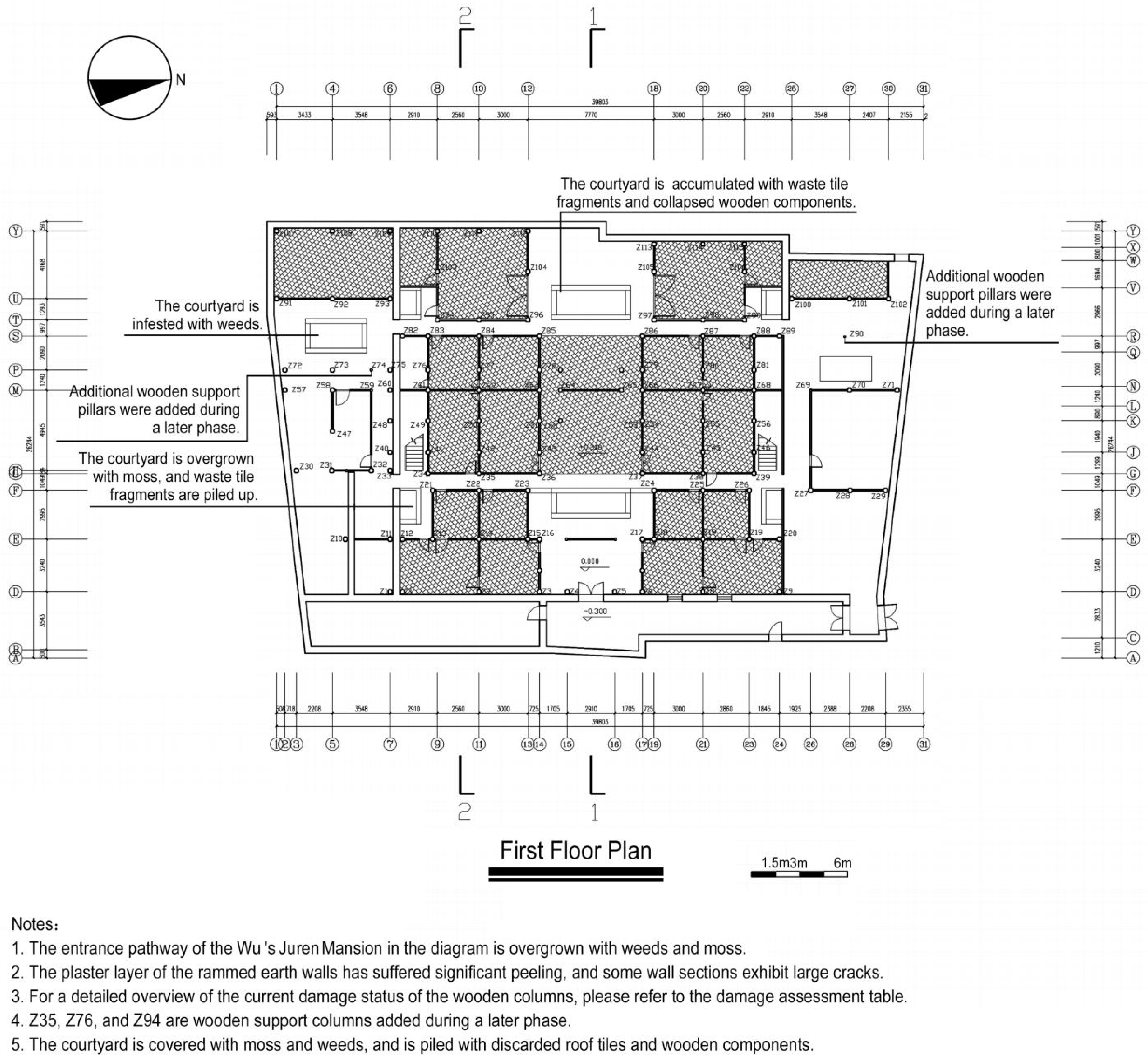 | Z36~Z48 | The lower part of the wooden column is slightly decayed. | |