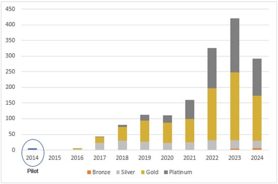 Number of certified projects by year and level.